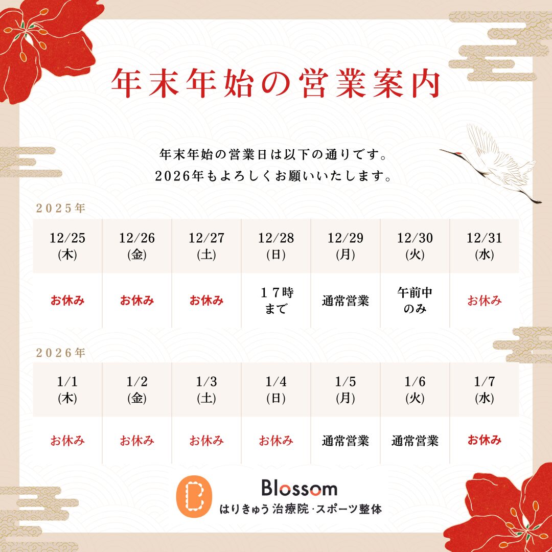 12/30(火)9時〜12時まで(午後は大掃除します)