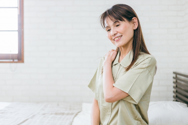 長時間の前かがみ姿勢は肩への負担を増やします。1時間に1回、背筋を伸ばして肩甲骨を軽く引き寄せるだけでも効果的です