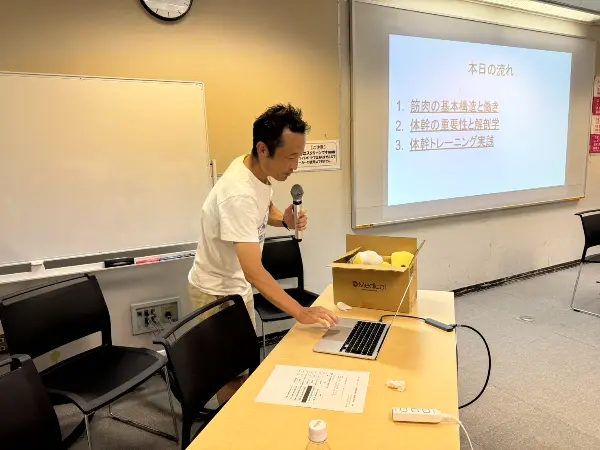 2025.08.05に王子の北とぴあで「北区スポーツ推進委員協議会」の皆さんに体幹トレーニング指導をさせていただきました。テーピング指導のお手伝いも兼ねて指導してきましたが、一つでもお役に立てることを伝えれたかなぁと思います。