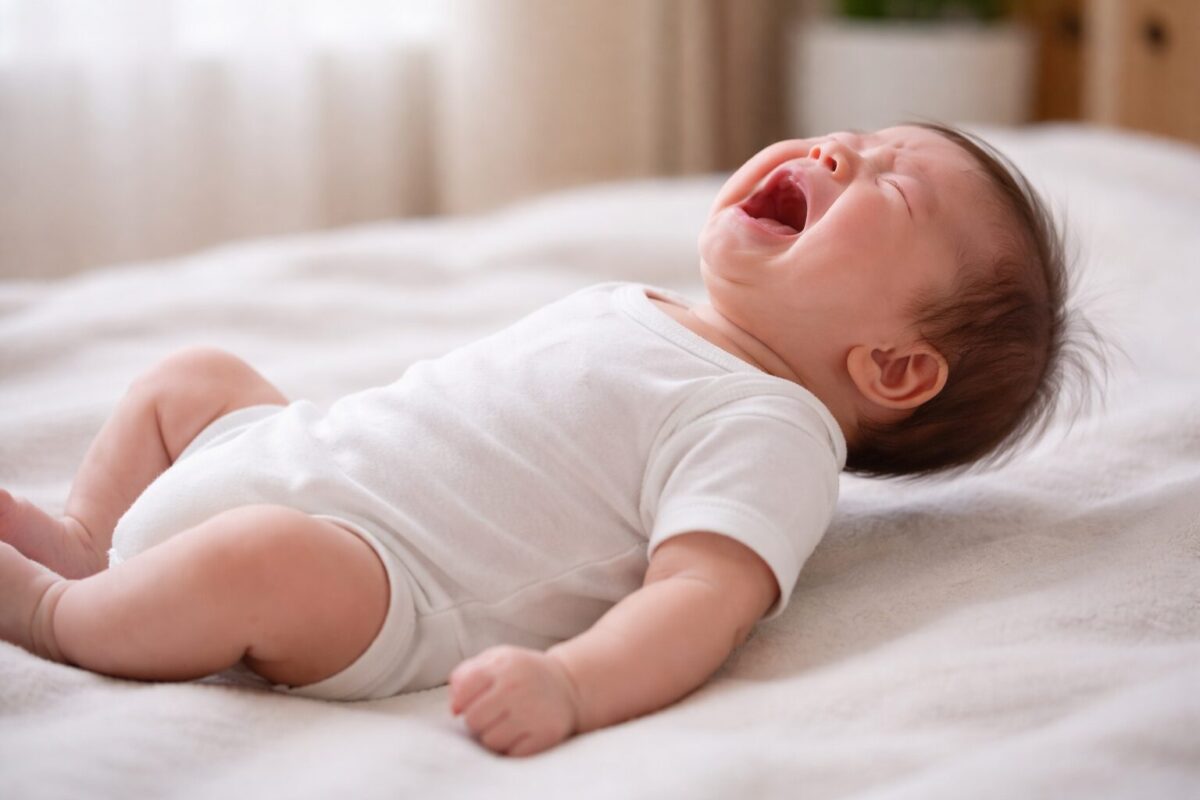 必ずしも痛みとは限らず、筋肉の緊張や不快感、眠気、刺激への過敏さなど、さまざまな要因が絡んでいます。泣き方や表情、体温や食欲なども合わせて見ていき、「明らかに痛そう」「いつもと違う」と感じる場合には、まず小児科で診てもらうことをおすすめします。